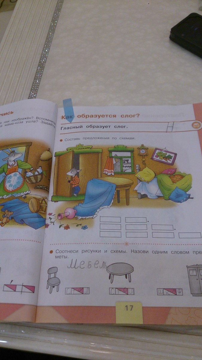 Мама зашла. Кругом был беспорядок. Она начала искать козлят.