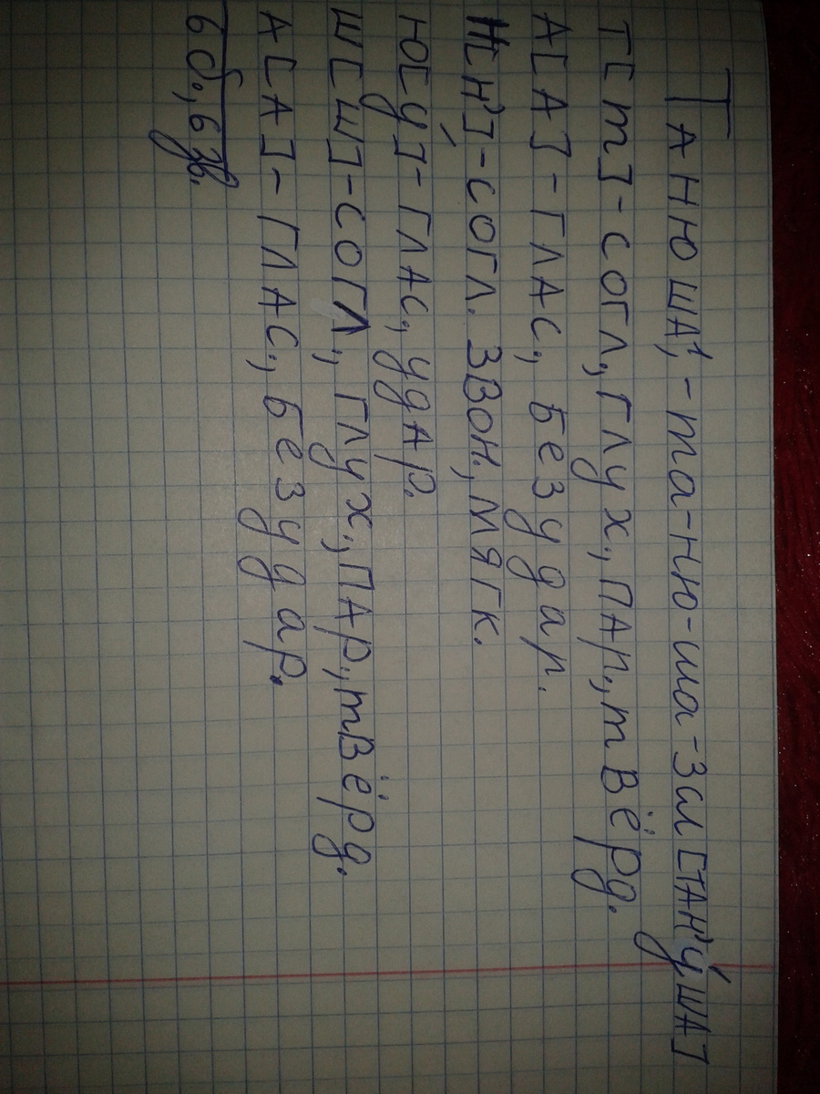 6 букв, 6 звуков, 3 согл, 3 гл.