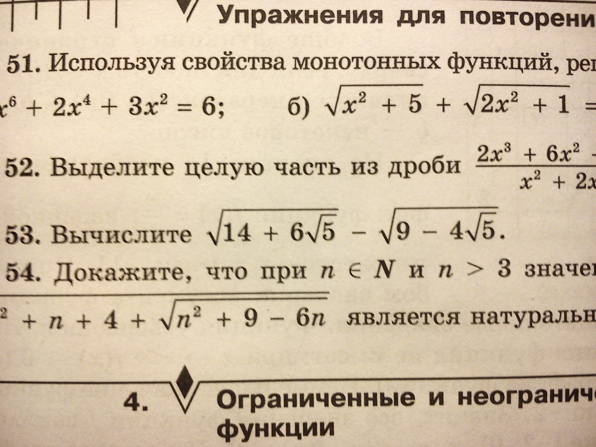 sqrt{14+6 sqrt{5} } -  sqrt{9-4 sqrt{5} } =  sqrt{3^{2}+ (sqrt{5})^{2}+2*3* sqrt{5}} - \ -  sqrt{2^{2} +(sqrt{5})^{2}-2*2* sqrt{5}}= sqrt{(3+ sqrt{5})^{2} } -  sqrt{(sqrt{5}-2)^{2}} =  \ = 3+ sqrt{5} -sqrt{5}+2=5