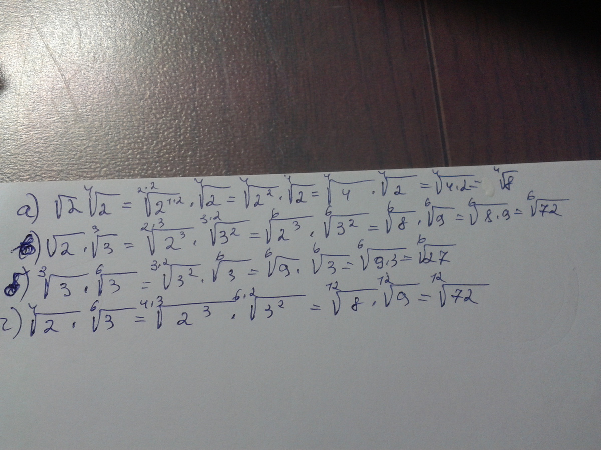 Всё подробно написала в решении.(Делаем одинаковые показатели корня.)