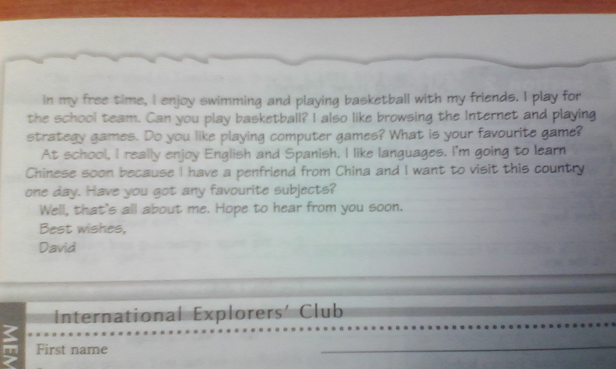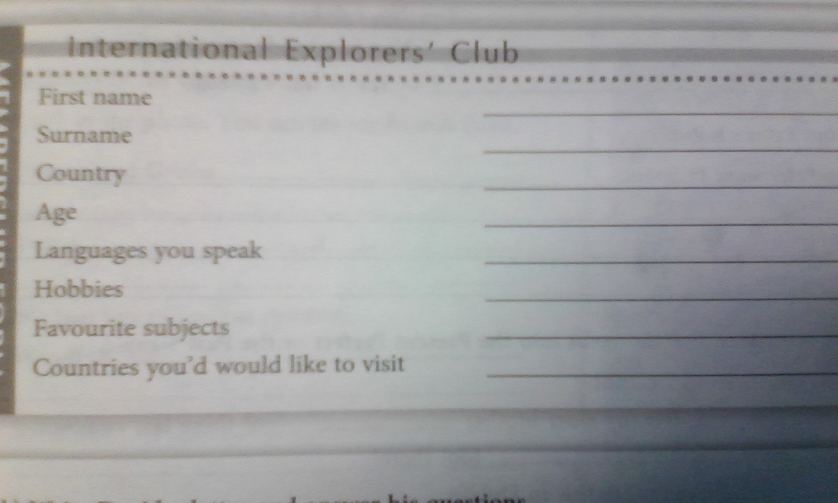 первое имя, фамилия, страна, номер, хобби,любимые уроки.