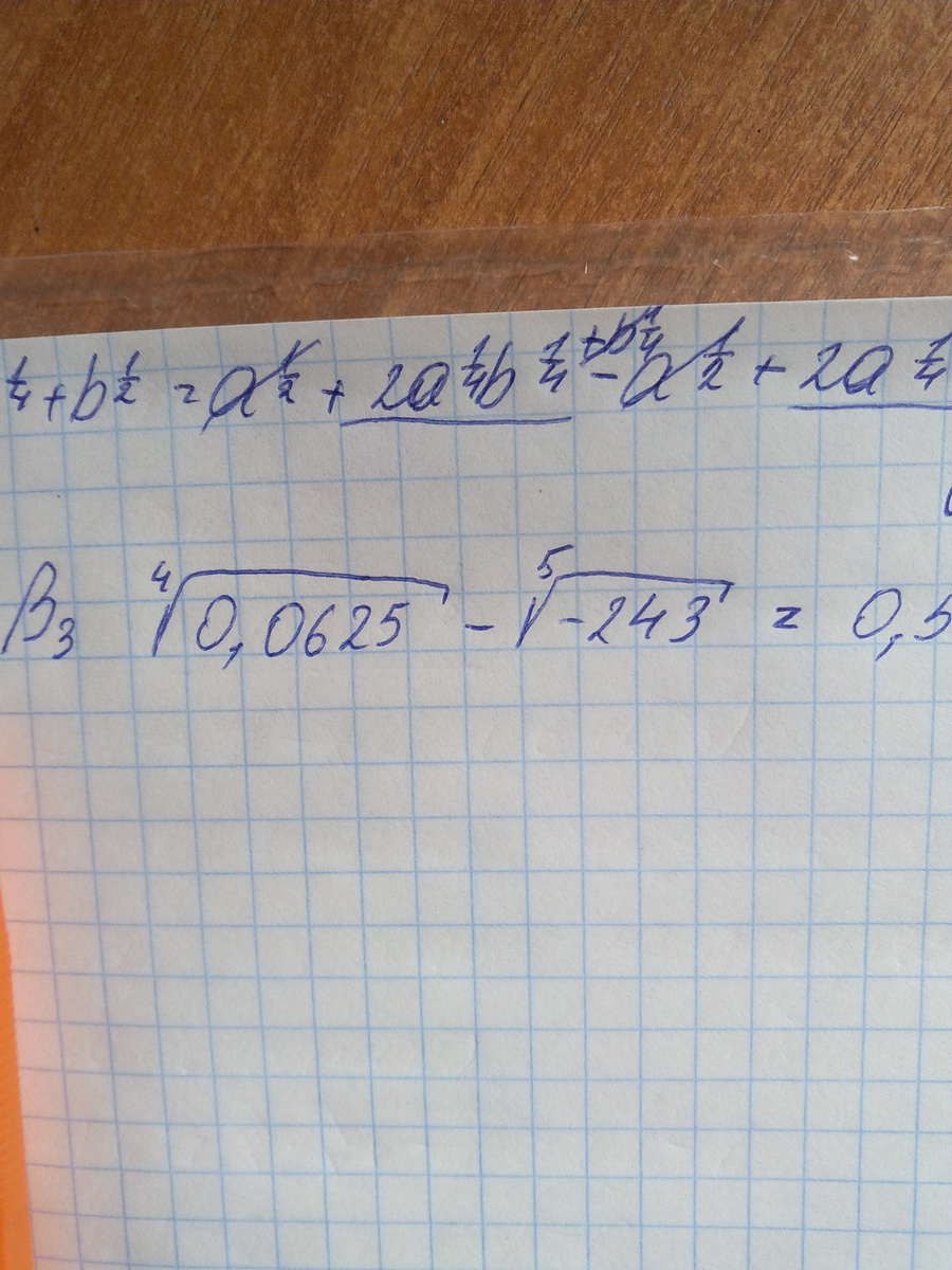 ну вообще смотри 4√0,0625-5√-243=(4√0,5^4)-(5√-3^5)=0,5+3=3,5