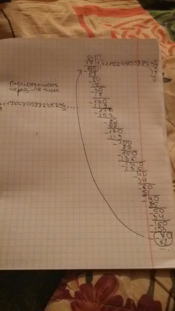 Для того, чтобы найти периодичность, нужно делить число в столбик, пока мы не дойдем до такого числа, что периодичность будет повторяться: