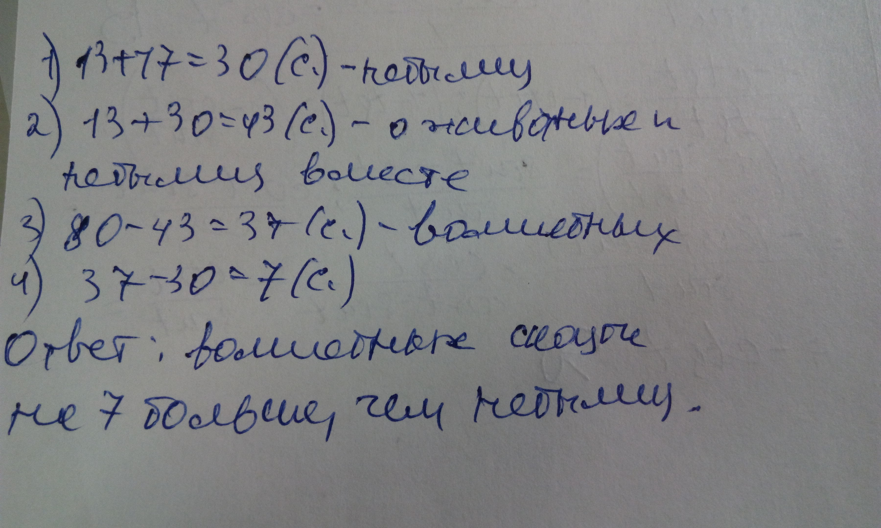 В сборнике 80 сказок. Из них 13 сказок - про животных, небылиц на 17 больше, чем сказок о животных, а остальные сказки - волшебные. Каких сказок больше: небылиц или волшебных? На сколько?