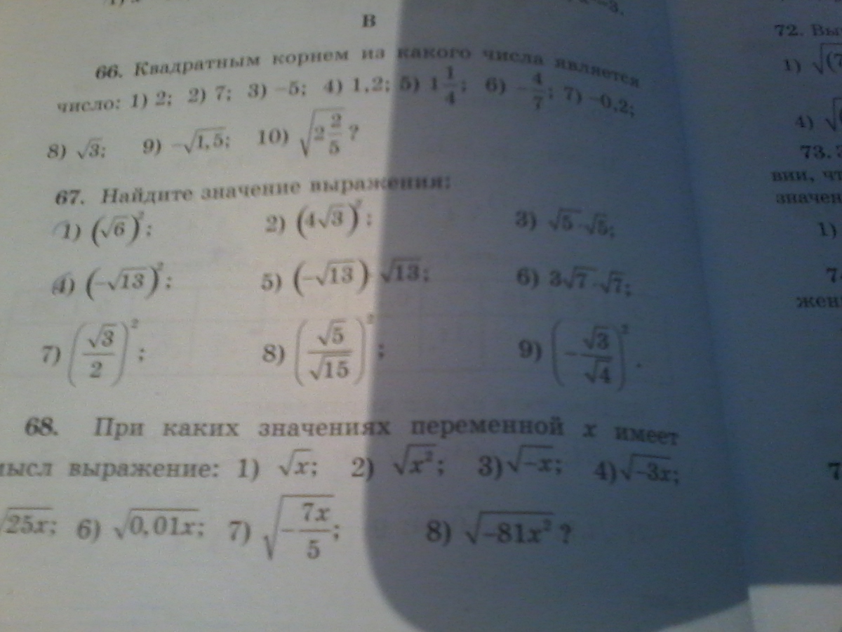 ( sqrt{6})^2=6\\(4 sqrt{3})^2=4^2( sqrt{3})^2=16*3=48\\ sqrt{5}sqrt{5}= (sqrt{5})^2=5\\(- sqrt{13})^2=(-1)^2*( sqrt{13})^2=1*13=13