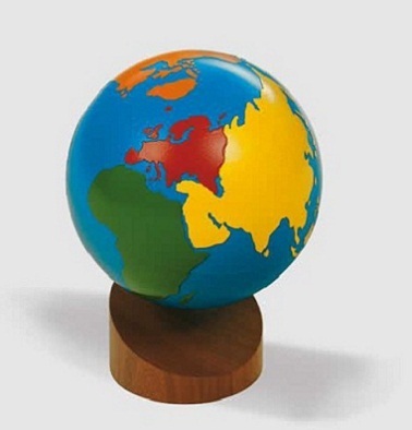 Если Вы имеете в виду глобус континентов Монтессори, то смотрите:, а если нет то,Коричневый, зелёный цвет – это вся суша и горы