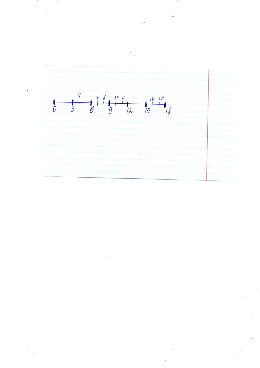 начертите отрезок 9 см . Над одним концом отрезка напишите число 0, а над другим -18 . Разделите отрезок на шесть равных частей . Назовите числа ,которые