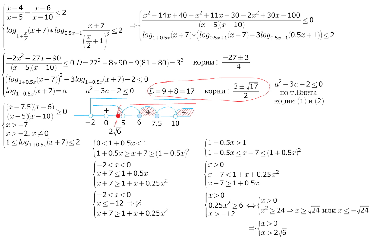 иначе корни иррациональные для логарифмического неравенства получаются)))