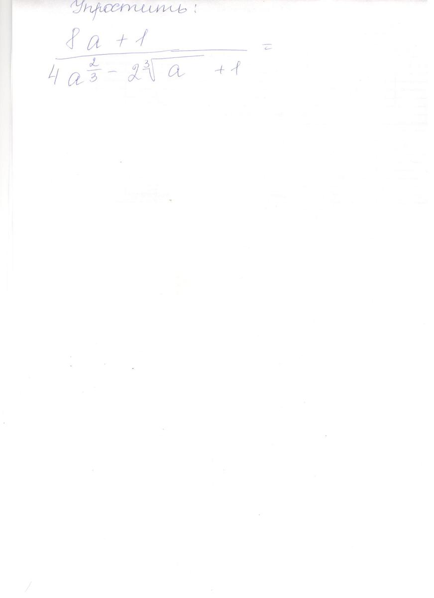 frac{8a+1}{4a^{frac{2}{3}}-2a^{frac{1}{3}}+1}=frac{(2a^{frac{1}{3}})^3+1^3}{4a^{frac{2}{3}}-2a^{frac{1}{3}}+1}=frac{(2a^{frac{1}{3}}+1)(4a^{frac{2}{3}}-2a^{frac{1}{3}}+1)}{4a^{frac{2}{3}}-2a^{frac{1}{3}}+1}=2sqrt[3]a+1