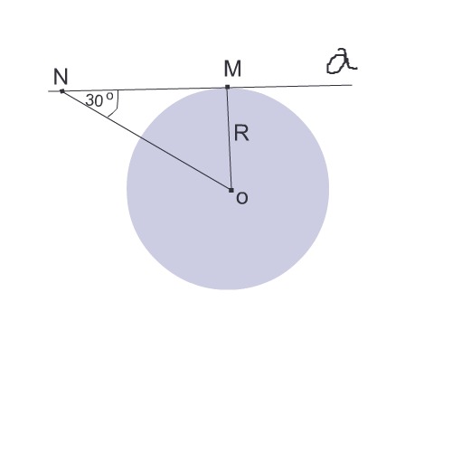 Радиус R противолежит углу 30° и поэтому равен половине гипотенузы NO