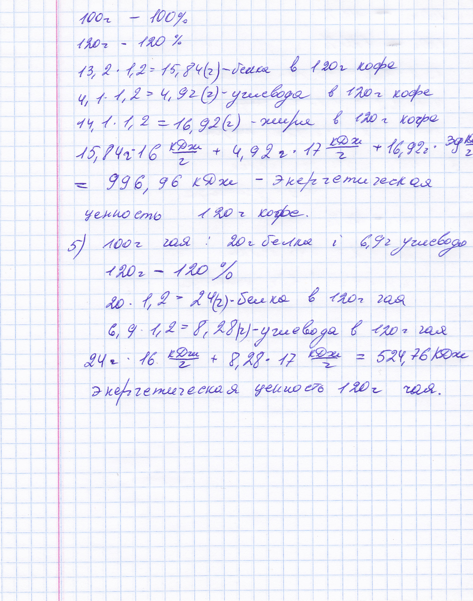определите энергетическую ценность 120г жареного кофе, если 100г жареного кофе содержит 13,2 г белка; 4,1г углерода и 14,1 г жира