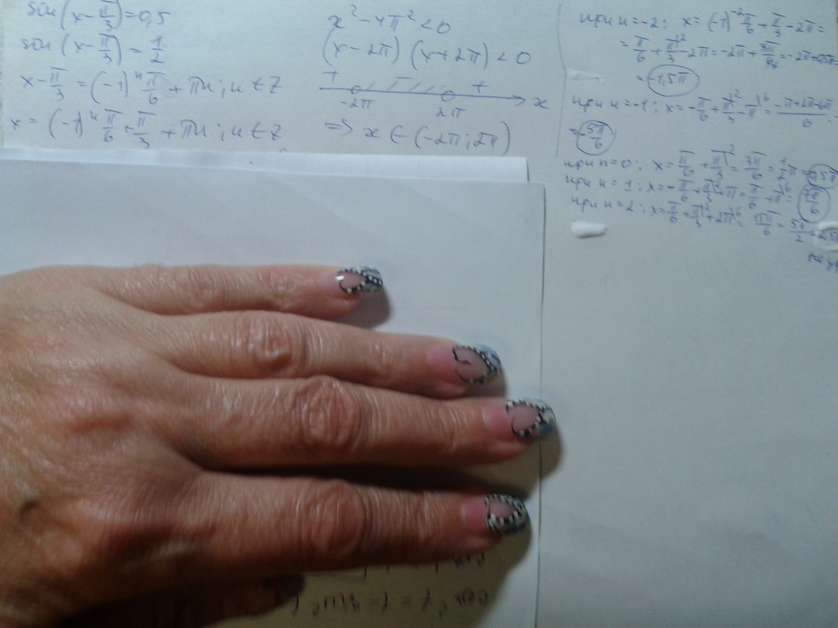 10 класс помогите срочно надо до завтра. Найти все решения уравнения sin(x-п/3)=0.5 удовлетворяющие неравенству x^2-4пi^2<0 30 БАЛОВ