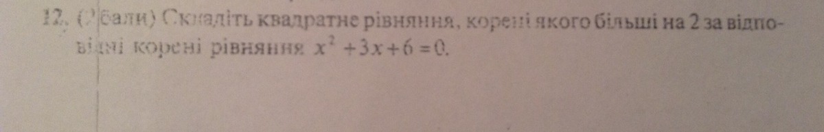 Сложите квадратное уравнение, корни которого больше на 2 чем корни уравнение Х^2+3Х+6=0
