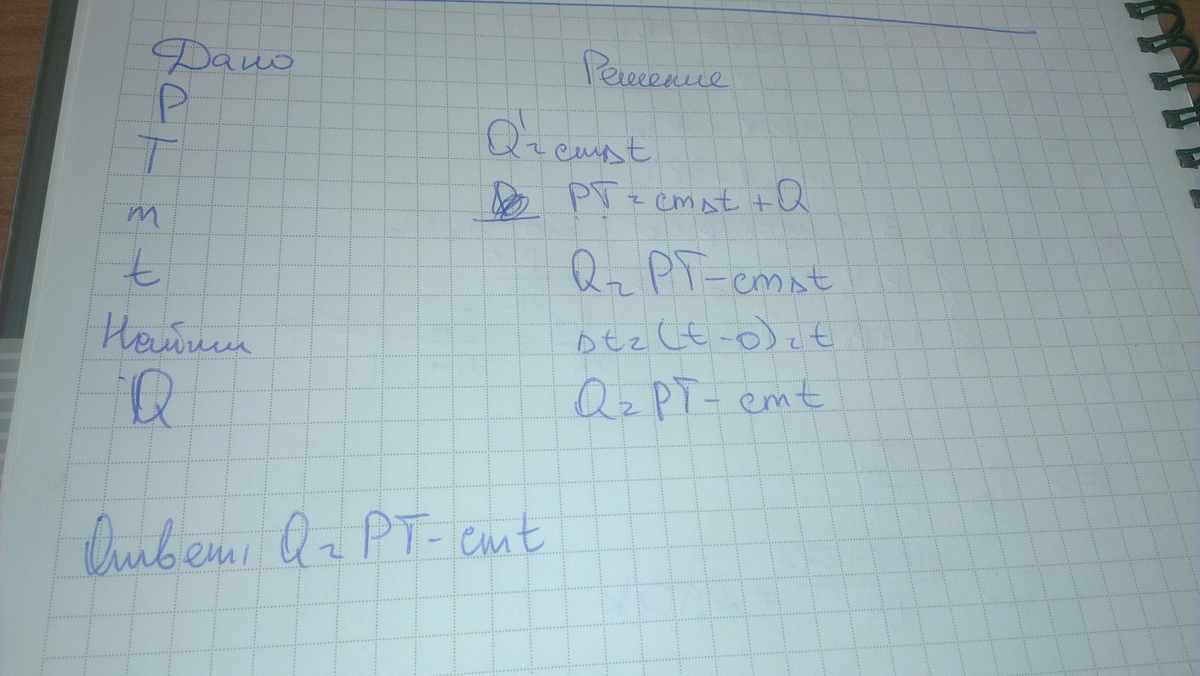Холодильник, потребляющий мощность P, за время T превратил воду в лед. Какое количество теплоты Q передал холодильник воздуху в комнате, если масса воды m, а ее начальная температура t ?