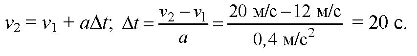 4. За какое время автомобиль двигаясь с ускорение 0,2 м/с^2 увеличит свою скорость с 10 м/с до 20 м/с ?