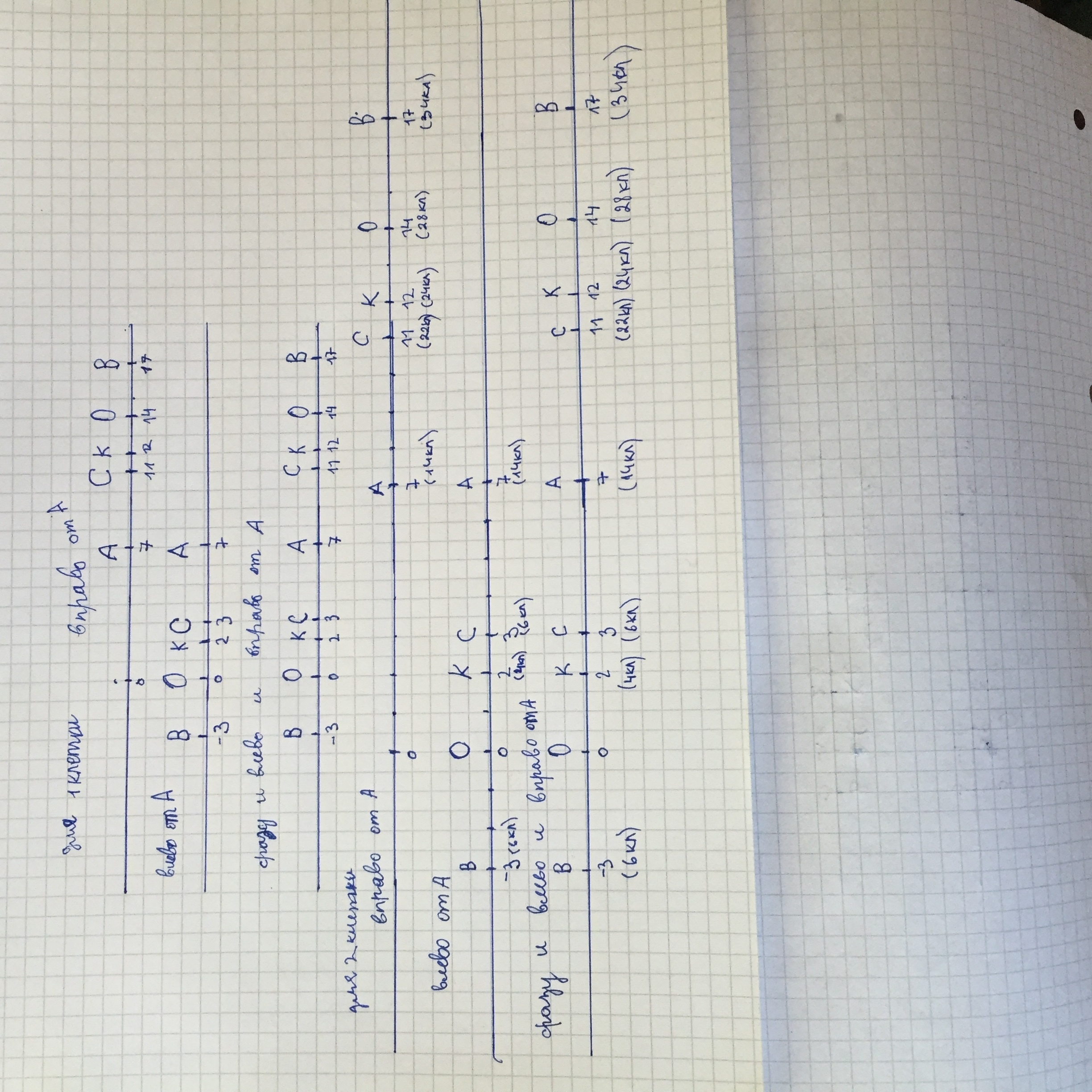 3)) вправо О= А+7=7+7=14 клеток от нуля вправо или семь от семи вправо