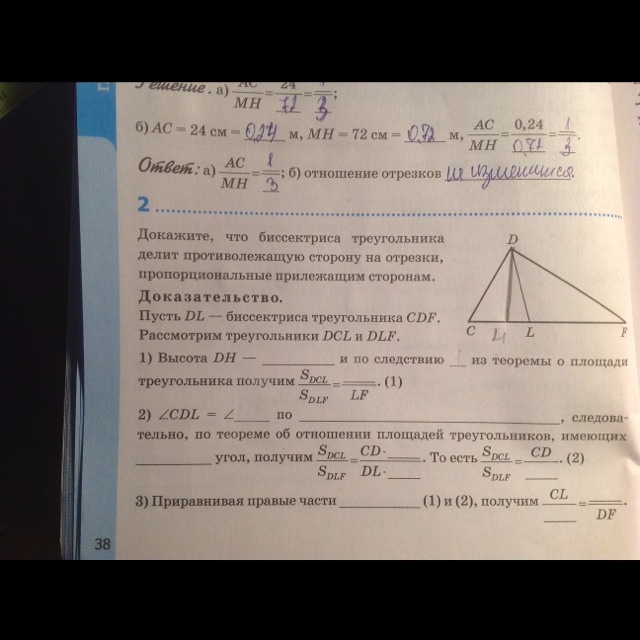 СД*ДЛ*синус угла СДЛ/ДЛ*ДФ*синус угла ФДЛ СД/ДФ и СЛ/ЛФ=СД/ДФ