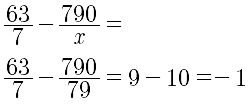 при х= 79, 63:7-790:х= 9-10=-1
