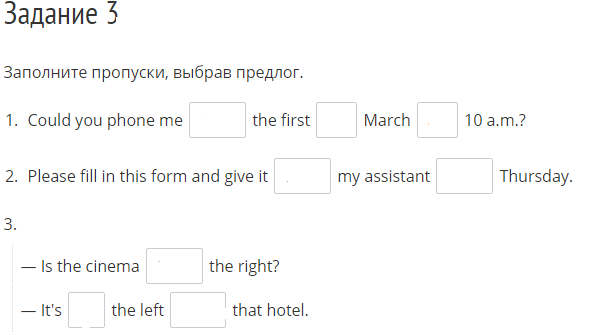 Заполните пропуски, выбрав предлог.