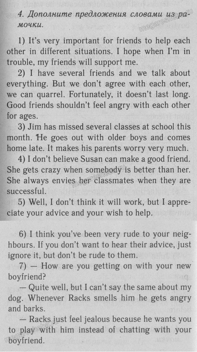 2. У меня есть не сколько друзей, и мы разговариваем обо всем. Но мы не всегда соглашаемся друг с другом, мы можем спорить. К счастью, споры не длятся долго. Хорошие друзья не должны сердиться друг на друга годами.