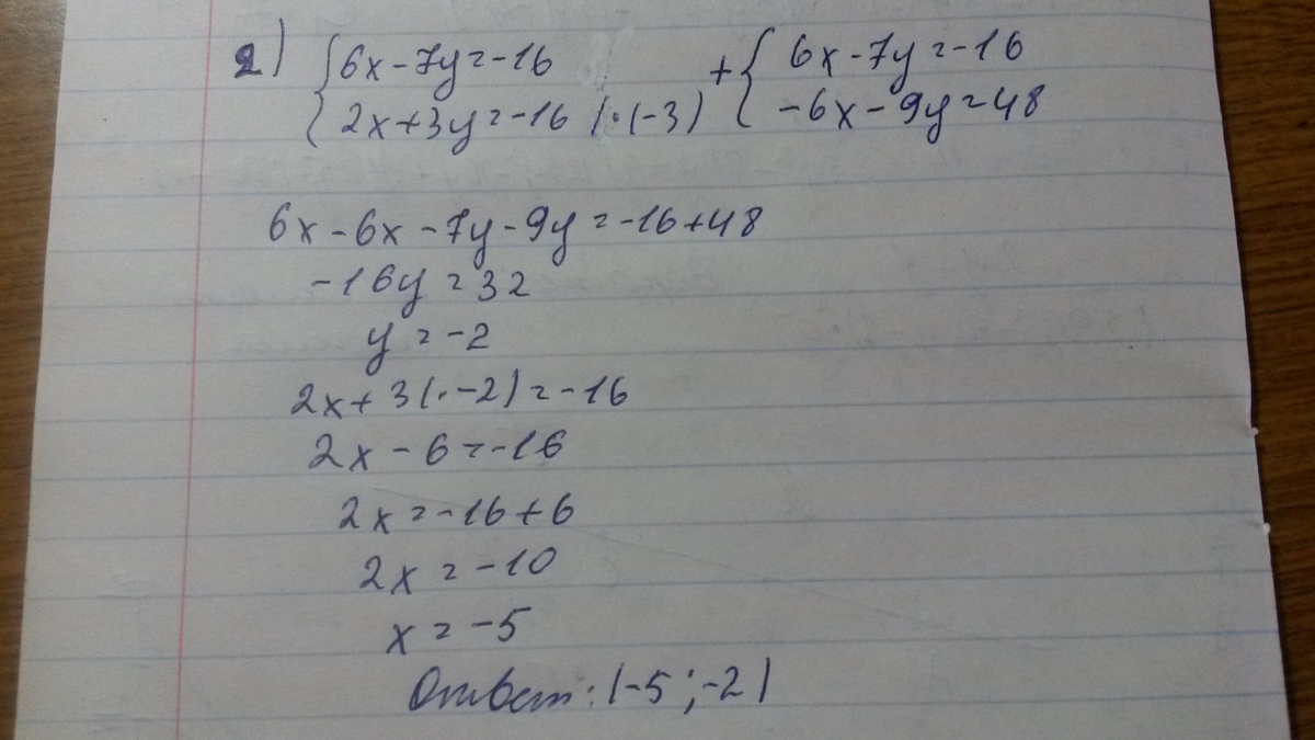 2x+3y=-16/*(-3)⇒-6x-9y=48