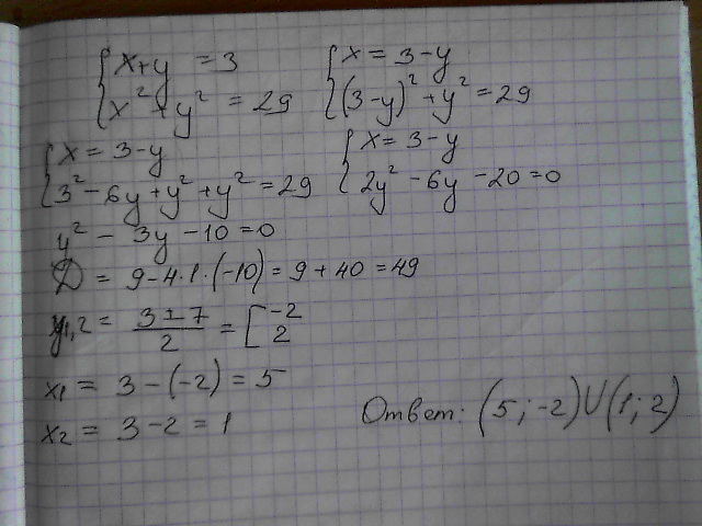 х^2+ у^2=29