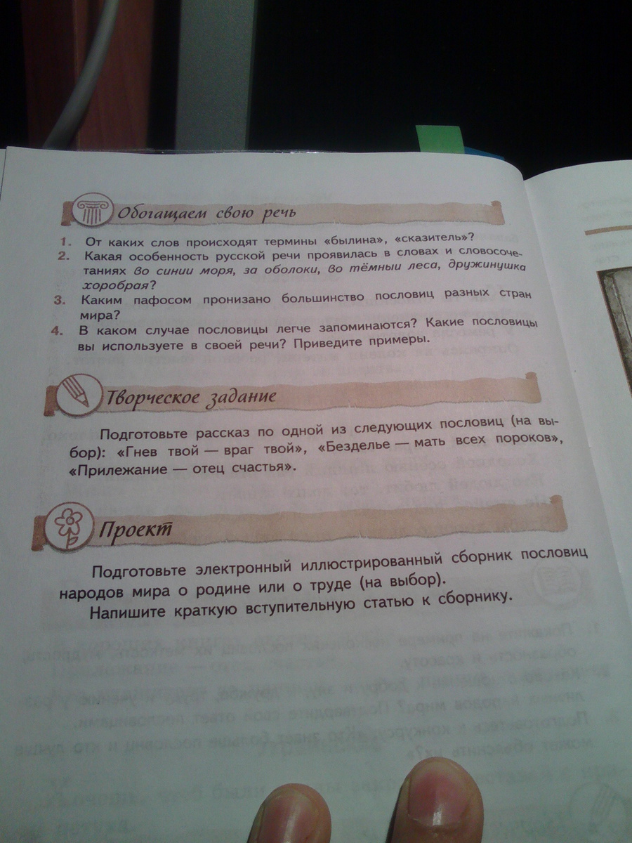 Сейчас помогу:)Я решила делать проект с подругой,мы пошли ко мне домой,нашли тему и стали писать...Все шло хорошо,мы начали выбирать подзаголовок текста!Но Катя стояла на своем,а я на другом ответе!!Я накричала на нее,и выгнала.На следующий день все показывали свои плакаты.Катя сидела обиженная.И когда вызвали нашу пару,то я ответила что мы не сделали.Я рассказала,что виновата я.Мне поставили 2.До этого я никогда их не получала мне стало обидно,что я все испортила! Пословица- гнев твой-враг твой.История вымышленная!