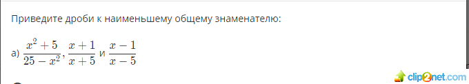 frac{ x^{2} +5}{25- x^{2}}= -frac{ x^{2} +5}{ x^{2} -25}= frac{- x^{2} -5}{(x+5)(x-5)} \  frac{x+1}{x+5} = frac{(x+1)(x-5)}{(x+5)(x-5)} = frac{x^{2}-4x-5}{(x+5)(x-5)}   \  frac{x-1}{x-5} = frac{(x-1)(x+5)}{(x-5)(x+5)} = frac{x^{2}+4x-5}{(x-5)(x+5)}