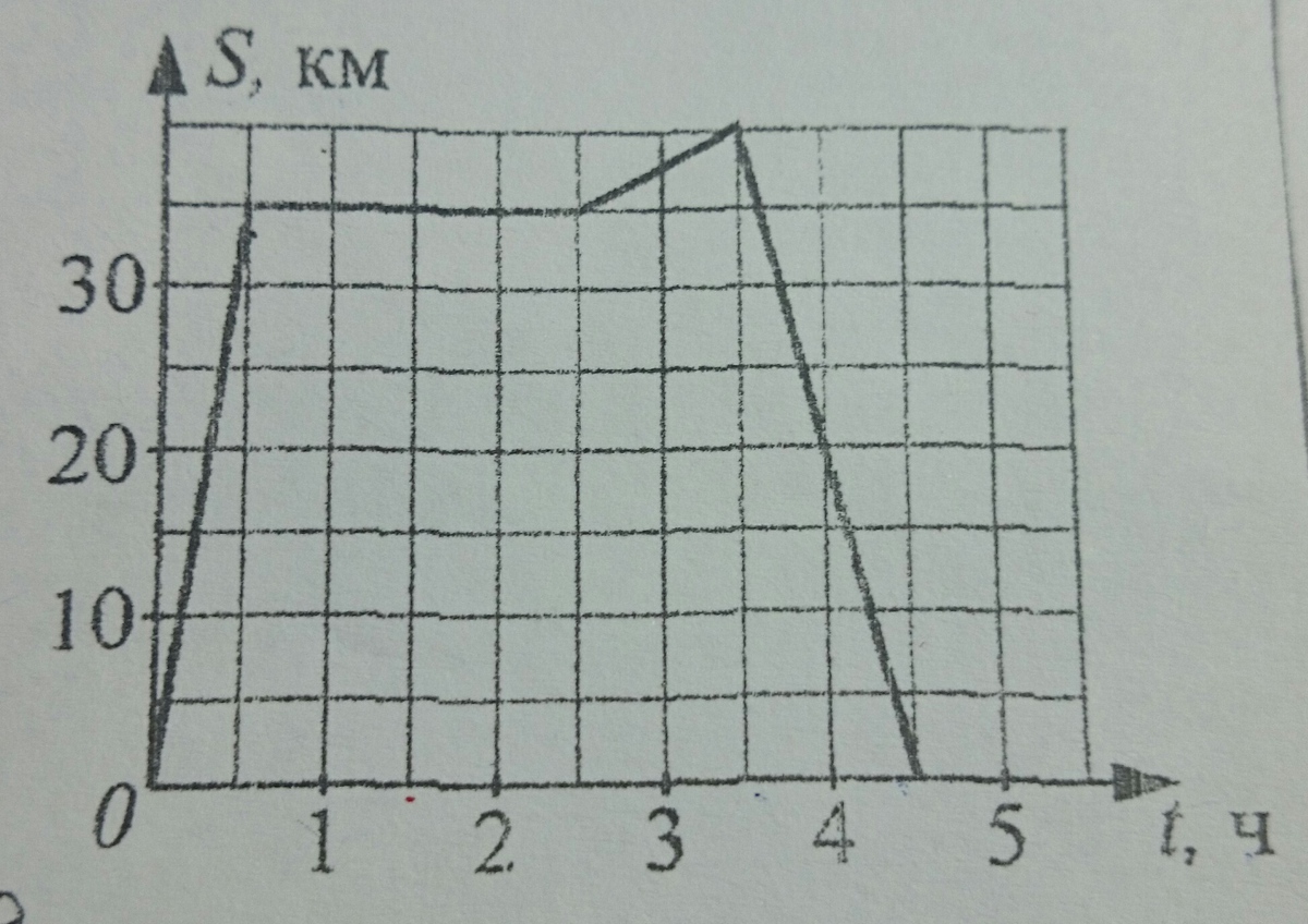 По графику видно, что дачник проехал на машине расстояние в 35 км за пол часа, отсюда скорость машины 70 км/ч.