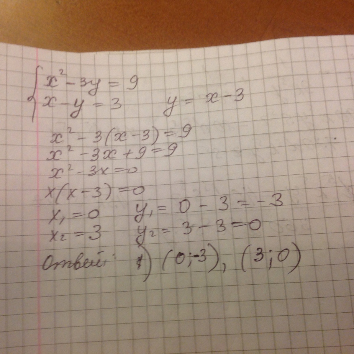 x^2 - 3y = 9