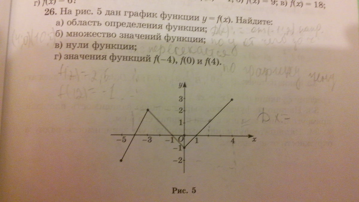 г) f(-4)=0; f(0)=-1; f(4)=3