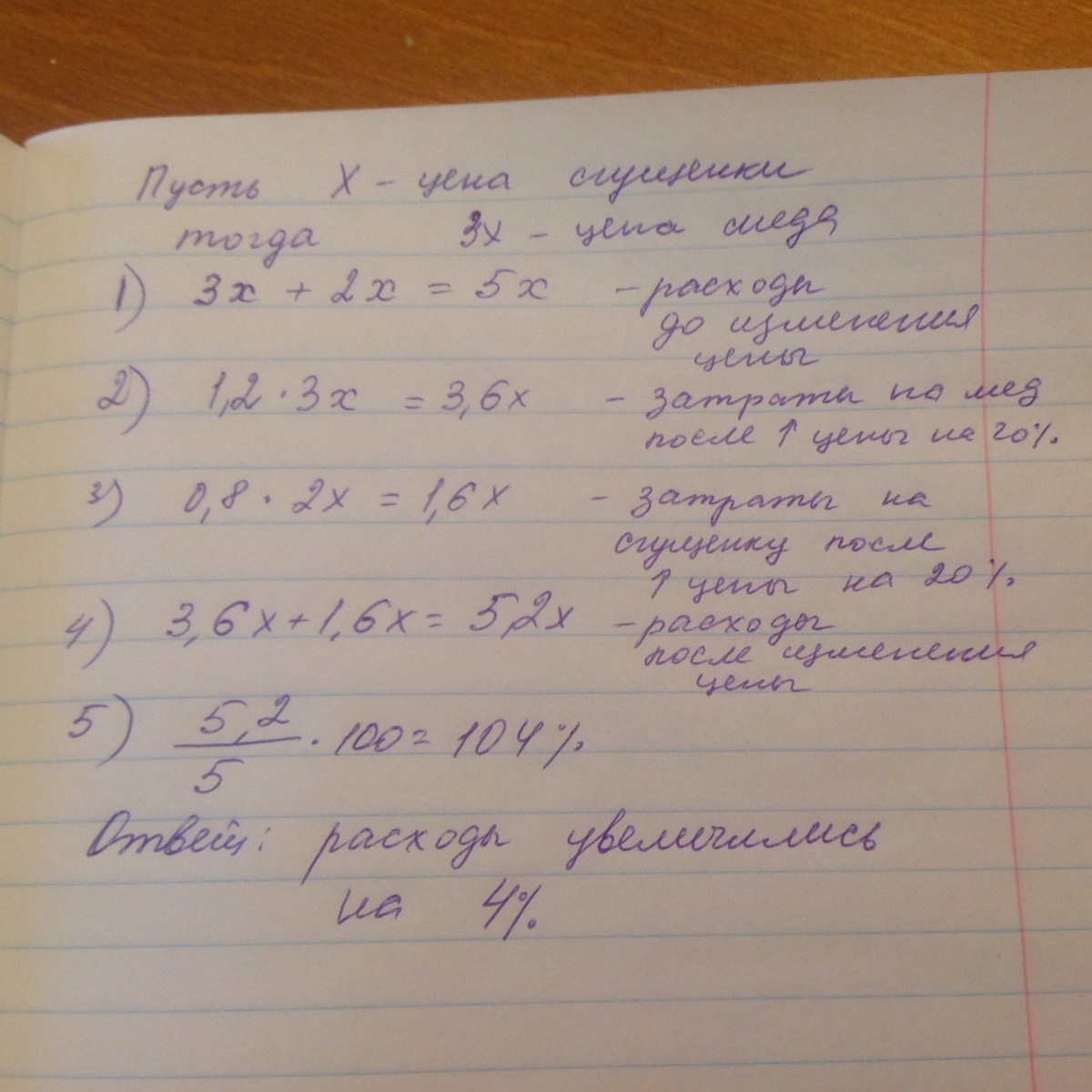Как изменились расходы Винни-Пуха, если мед подорожал на 20%, а сгущенка подешевела на 20%?