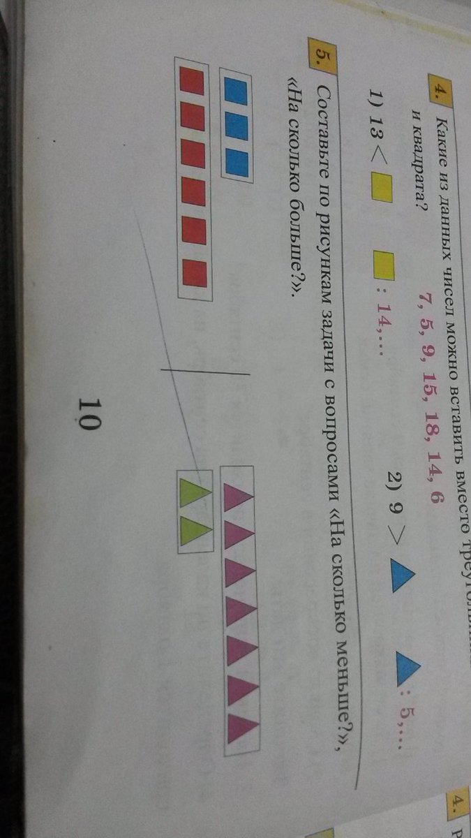 Составьте по рисункам задачи с вопросами На сколько меньше? , На сколько больше? задание номер 5 памогите пожалуйста