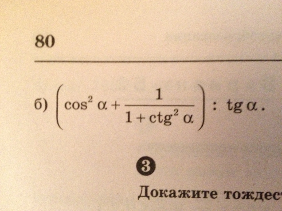 Второе задание согласно формул равно (cos^2(a) +sin^2(a)):tga=1/tga=ctga