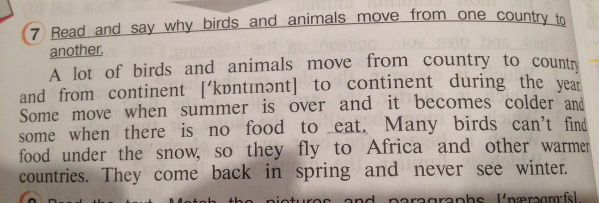 от страны рассчитывать Много птиц и животных двигаться и с континента континенте в течение Е. Некоторые шаг, когда лето закончилось, и она становится холоднее, и некоторые, когда нет никакой пищи для многих птиц, не может найти пищу под снегом, поэтому они летают в Африке и других теплых странах. Они возвращаются весной и никогда не увидеть зиму.