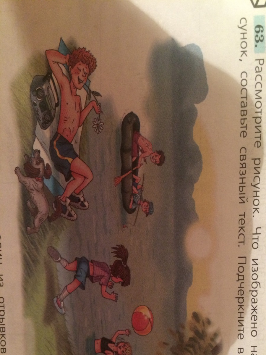 просто напиши что на данной картинке ты видешь лето. так как тут загарают и катаются на лодке