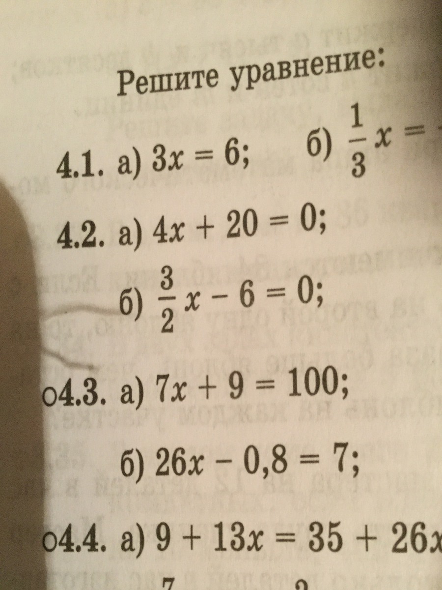 а) 7х + 9 = 100 б) 26х - 0.8 = 7