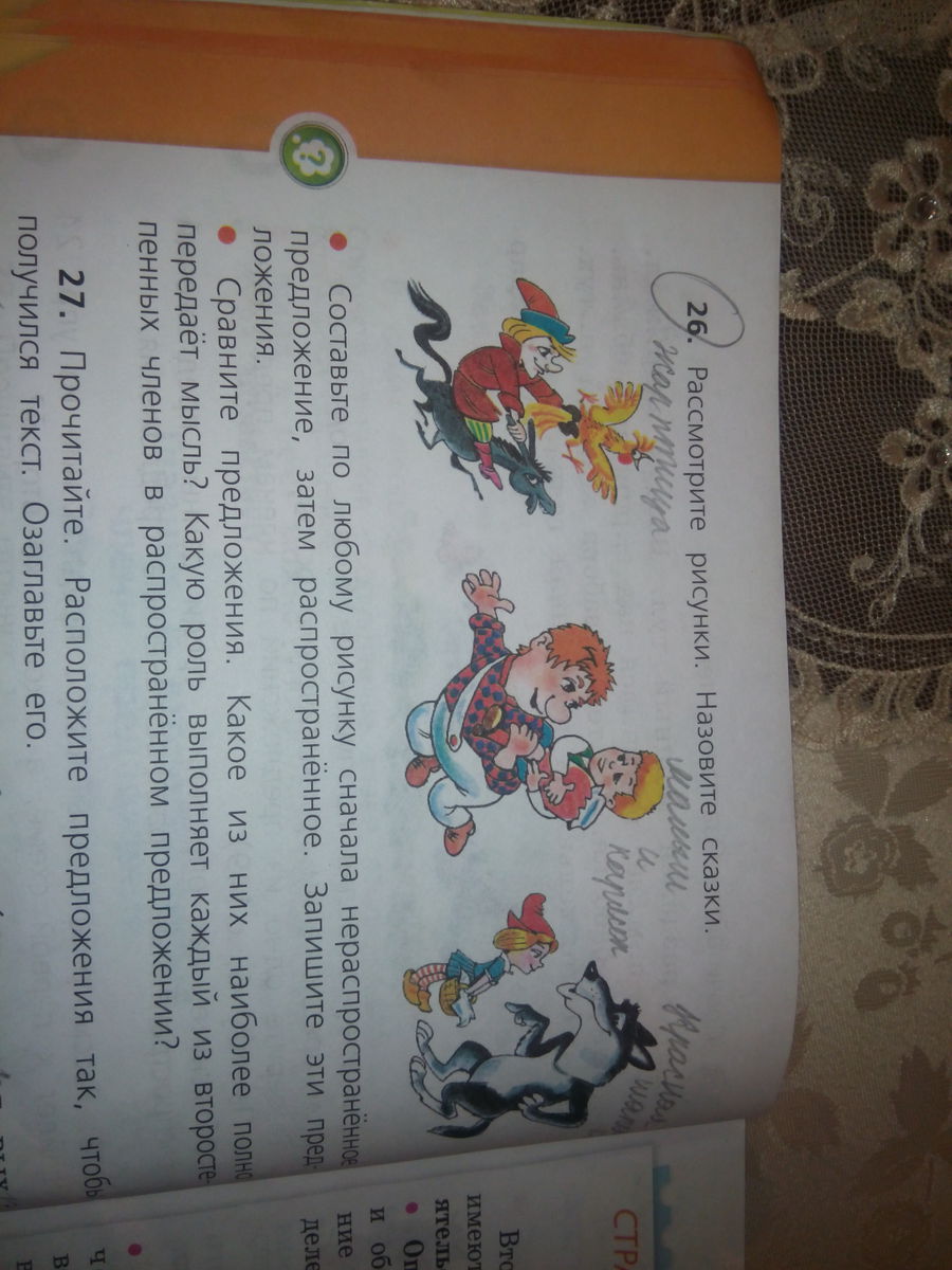 Распространенное предложение - Карлсон летит, а Малыш сидит у него на спине и держит банку вкусного варенья.