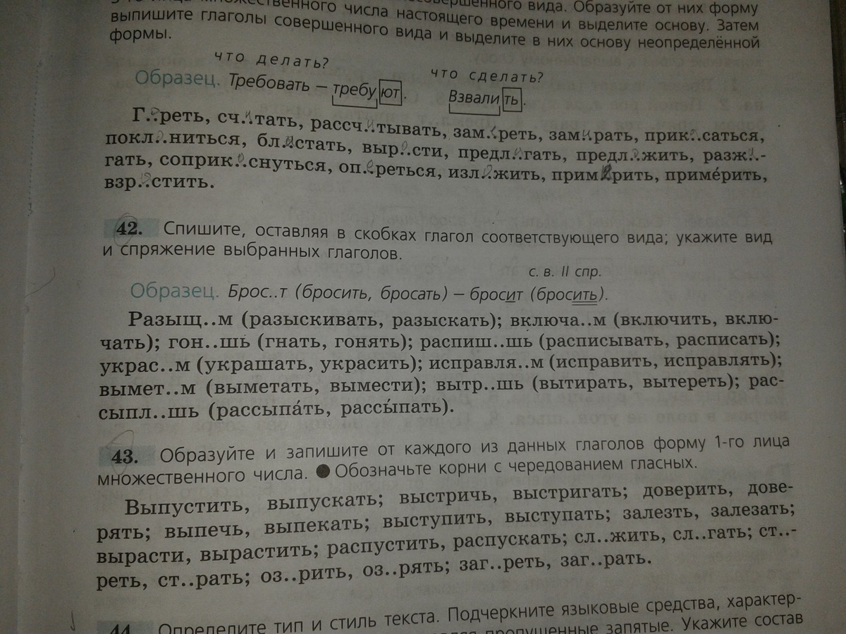 Разыщем (разыскать,с., римская один), включаем (включать, н., римская один), гонишь (гнать, н., римская два, исключение), распишешь (расписать, с., римская один), украсим (украсить, с., римская два), исправляем (исправлять, н., римская один), выметем (вымести, с., римская один), вытрешь (вытереть, с., римская один), рассыплешь (рассыпать (ударение падает на ы),с., римская один)