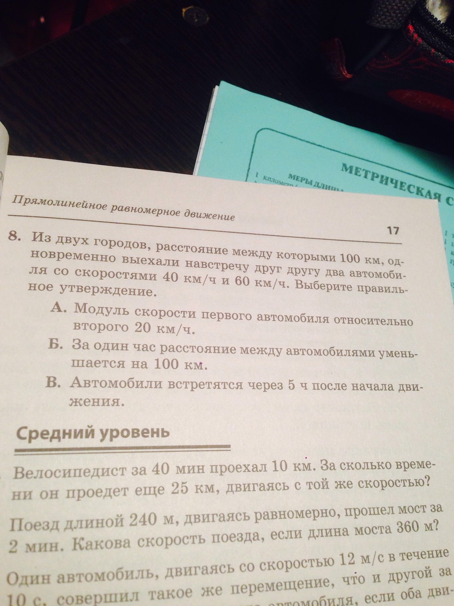 Второе верно, так как один автомобиль пройдет 40 км, а другой 60 км, и они встретятся, то есть между ними станет 0 км, а было 100 км.