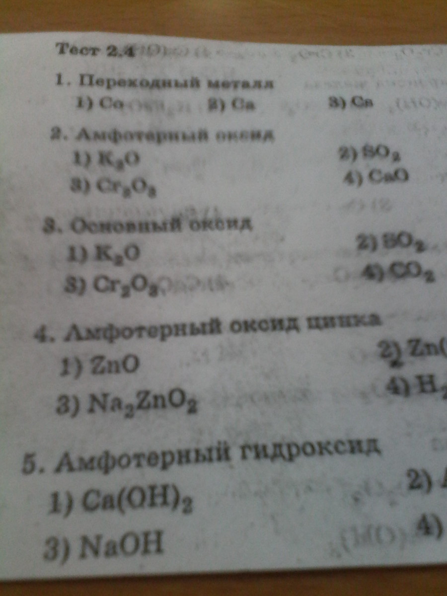 Амфотерный гидроксид:1)Ca(OH)2?но точно не уверена так как не видно 2 и 4 варианта ответа,а так всё правильно