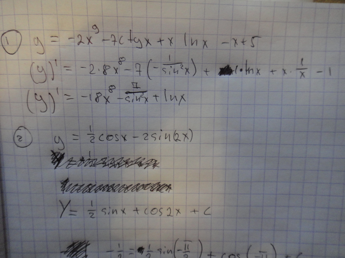 1) y=-2x^9-7ctg(x)+xln(x)-x+5