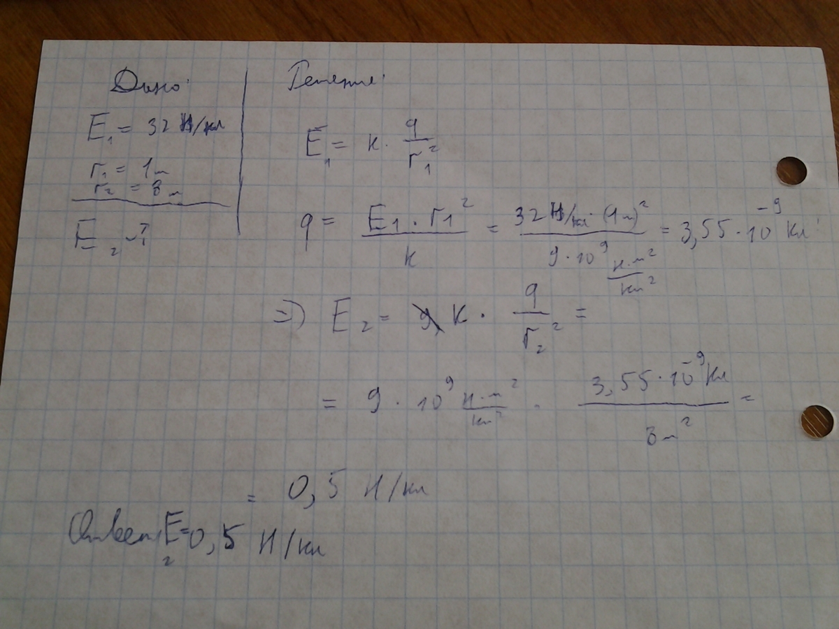 Напряженность электрического поля точечного заряда на расстоянии 1м от него равняется 32 В/м. Определите напряжение этого поля на расстоянии 8м от заряда