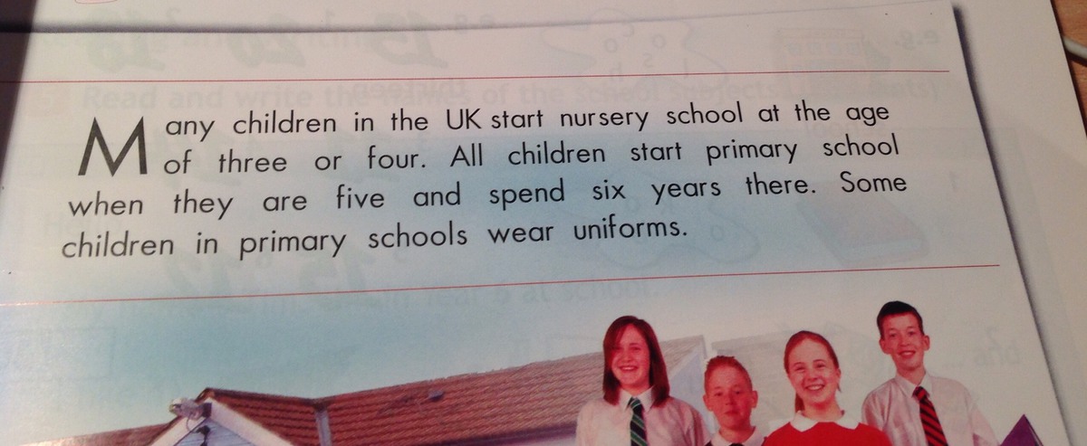 Много детей в Великобритании идут в детский сад в 3 или 4 года. Все дети идут в начальную школу, когда им 5 лет, они учатся в ней 6 лет. Некоторые ученики в начальной школе носят школьную форму.