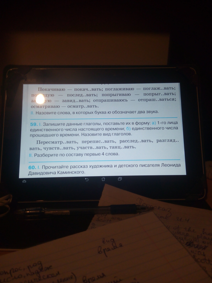 2)Пересматривал, переписывал, расследовал, разглядывал, чувствовал, участвовал, танцевал.