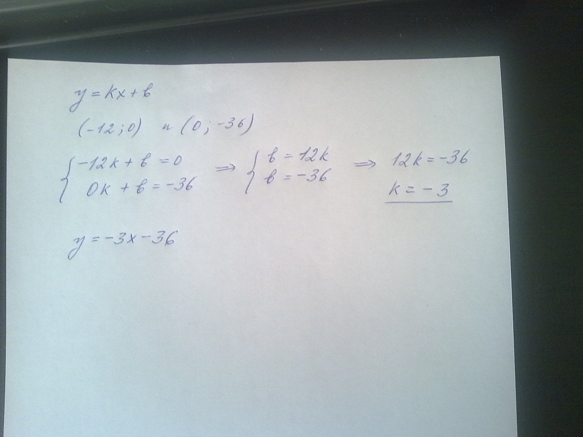 Если график линейной функций проходит через точки (-12:0) и (0:-36), то какой формулой её можно задать