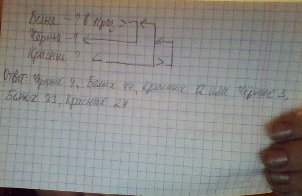 В коробке находятся белые,чёрные и красные кубики.Всего 60 штук.Белых в 11 раз больше,чем чёрных.Красных меньше белых,но больше чёрных.Сколько красных кубиков находится в коробке?