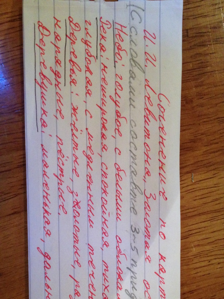 Рядом с маленькой деревушкой протекала неширокая, спокойна река. На берегу росли деревья, с которых падали желтые листья, которые показывали нам, что осень уже пришла. Над деревней, на юг, пролетали стаи птиц. Небо было безупречно голубым с белыми, воздушными облаками.