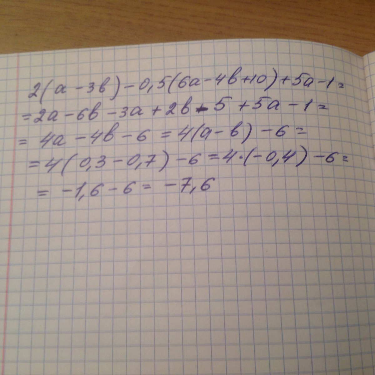 2(a-3b)-0,5(6a-4b+10)+5a-1
