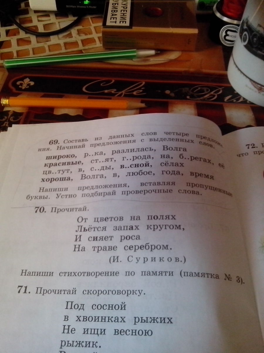 Широко разлилась река Волга. Красивые города стоят на ее берегах. Весной в сёлах цветут сады. Хороша Волга в любое время года.